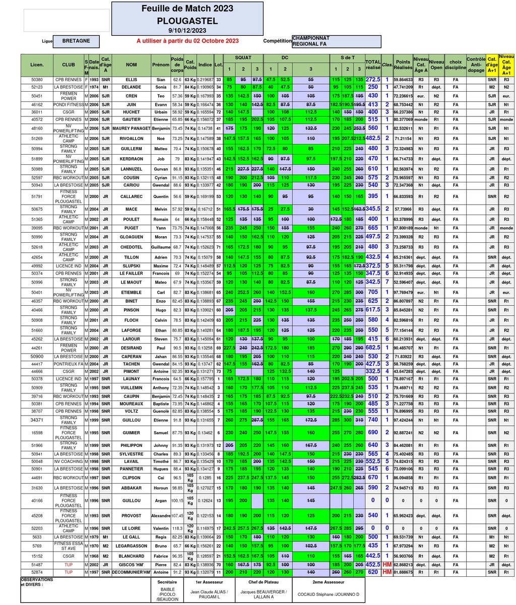 Championnat 3 mouvements Le 09-10/12/2023 (Plougastel)