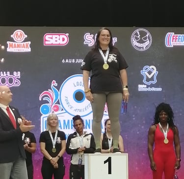 Sonia termine première de sa catégorie! Championne de FRANCE pour sa première participation: 120 SQUAT 57,5 DC et 145 TERRE: Félicitations!!